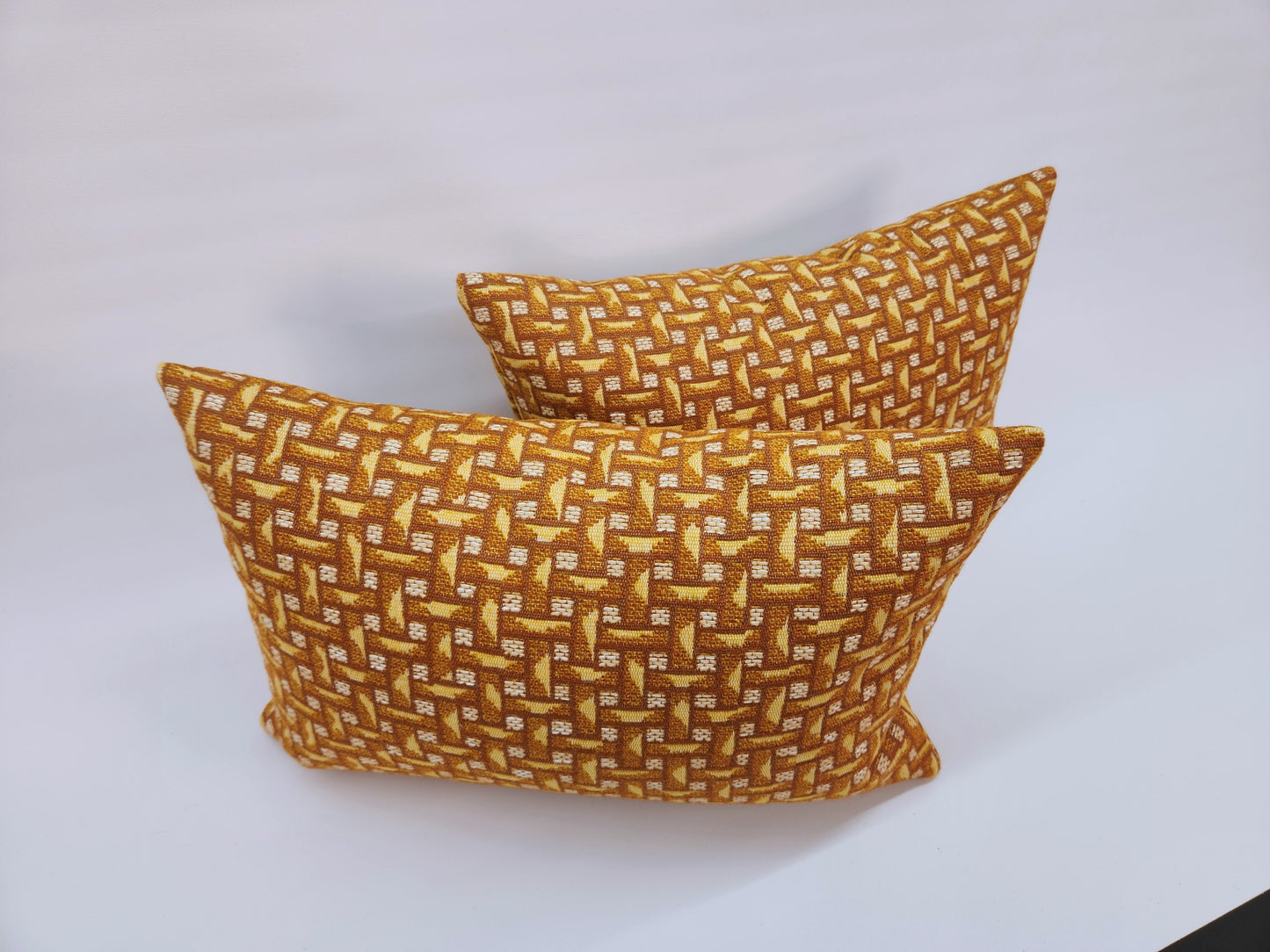 Vintage Fabric Chunky Orange, Yellow and Natural Geometric Woven 1970s Lumbar Pillow 12"x18"