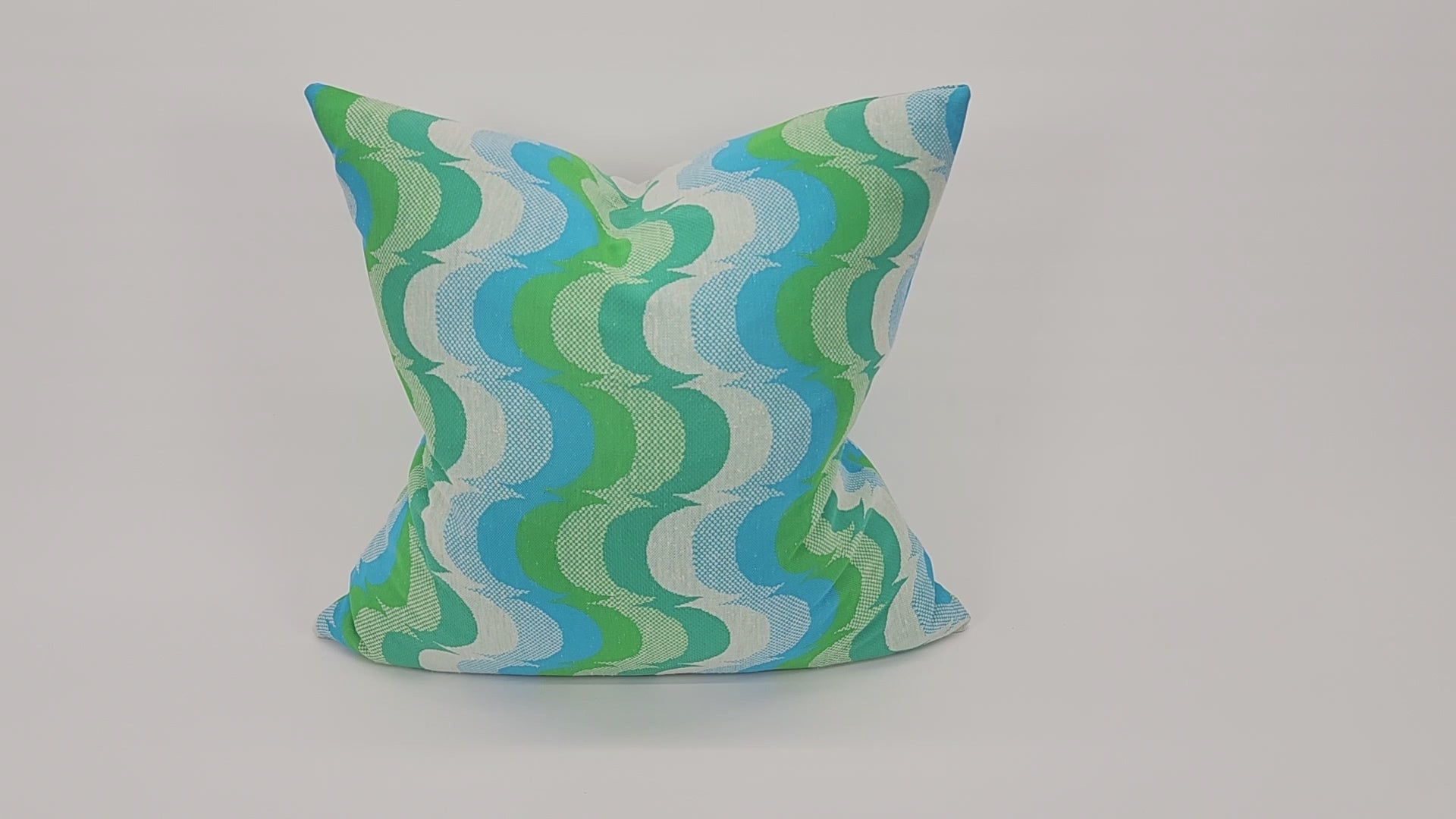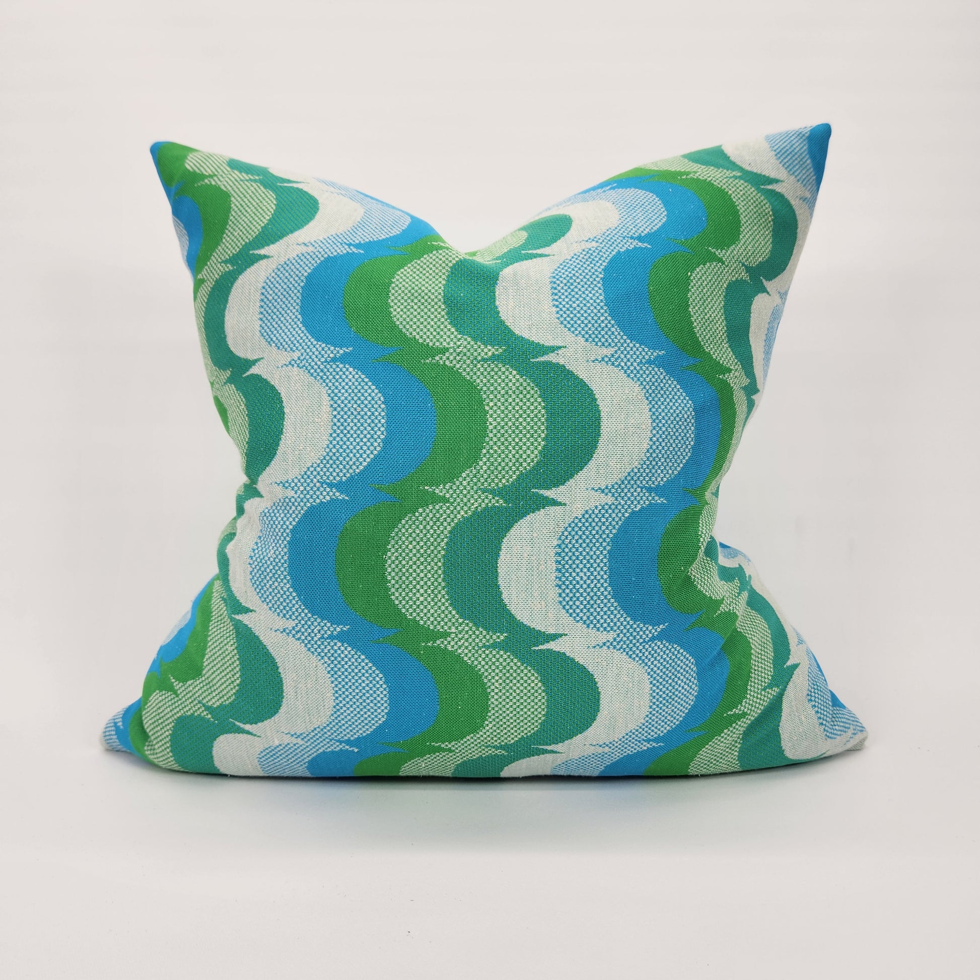 Funky Blue Green Wave Vintage 1970s Double Knit 20" Pillow